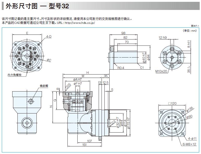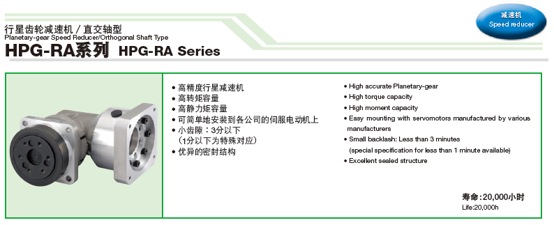 HPG-RA行星減速機(jī)是高精度行星齒輪減速機(jī),可簡(jiǎn)單的安裝到各公司的伺服電機(jī)上。 諧波發(fā)生器:橢圓形凸輪的外圈上嵌入薄型的滾珠軸承,整體呈一橢圓形狀的零件。軸承的內(nèi)圈固定于凸輪之上,外圈則介由滾珠彈性變形。一般安裝在輸入軸上。 柔輪:具有薄壁杯型的金屬?gòu)椥泽w的零件。杯的開口部外圈刻有齒形。柔輪的底部稱為膜,通常安裝到輸出軸上。 剛輪:剛性環(huán)狀的零件。內(nèi)側(cè)上刻有與柔輪同樣大小的齒形,且比柔輪多2個(gè)齒數(shù)。一般固定在外殼上。